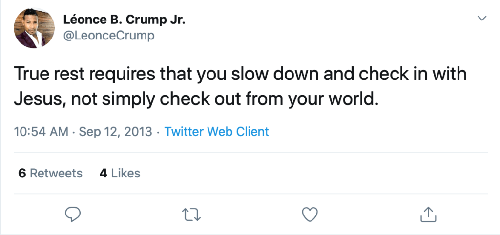 I had hoped that my withdrawal from various ministries and the reasons I had cited for my withdrawal would trigger some sort of shepherding response from the pastoral staff, but there was none. All I saw was this tweet from Léonce, coincidentally about thirty minutes after I got off the phone with Pamela.